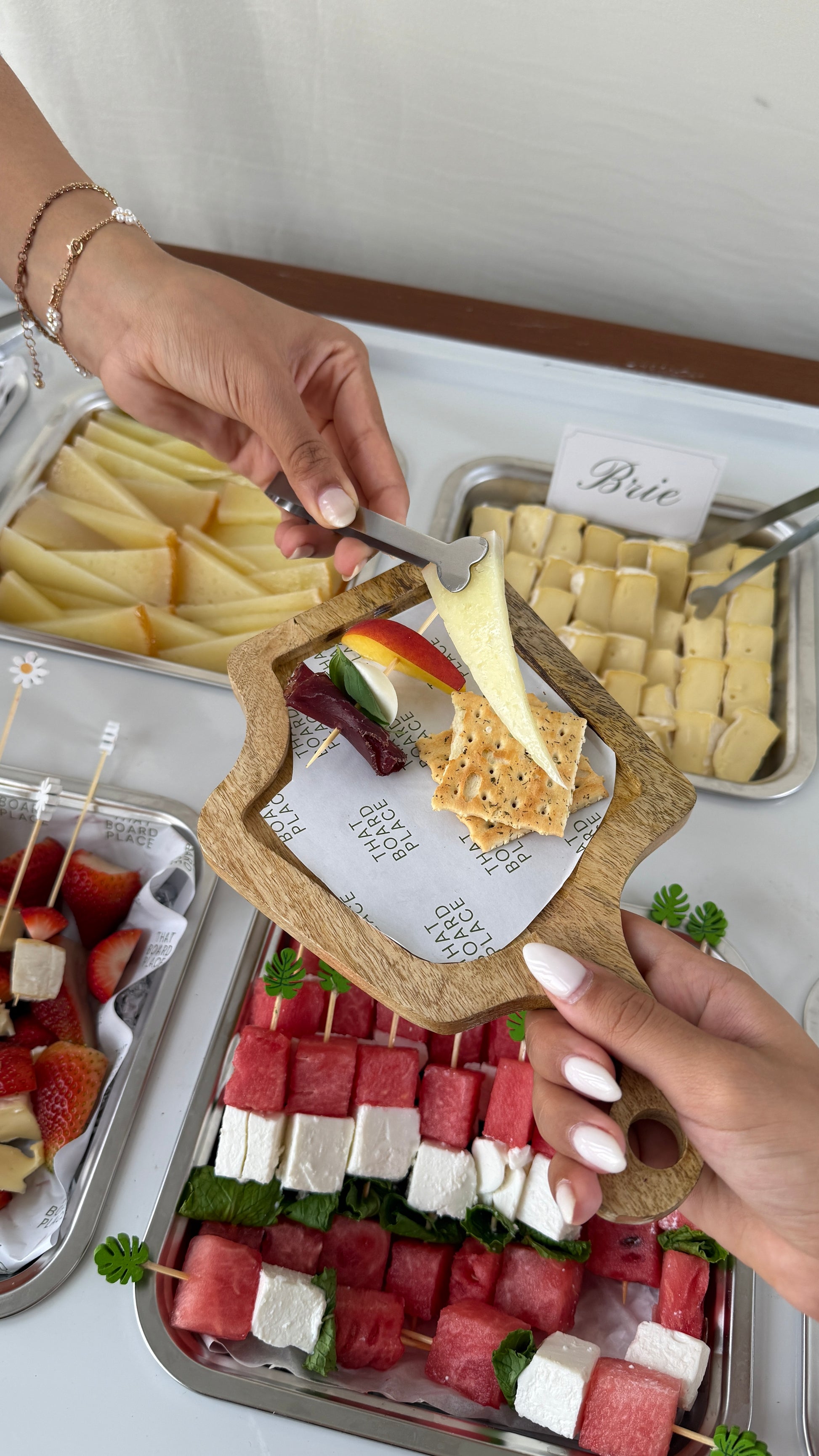 Design your dream grazing cart with our curated selection of cheeses, meats, breads, dips, and extras, all styled to amaze your guests.